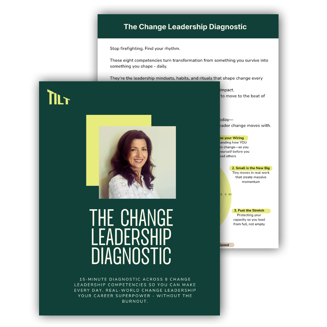 Your 15 minute, free Change Leadership Advantage diagnostic starts with addressing your blind spots, understand where you are at against 8 competencies so you can stop leading on instinct and adrenaline and start leading with the confidence to let go and shape what comes next.